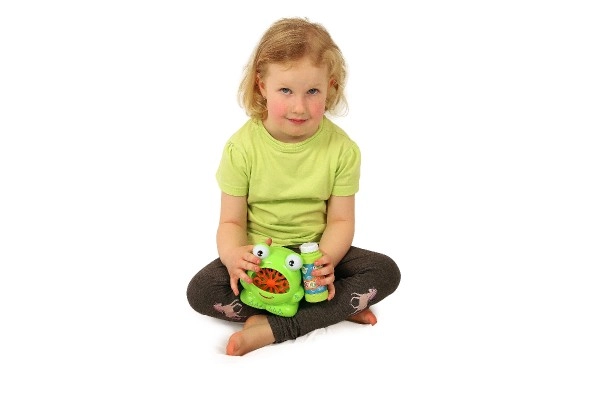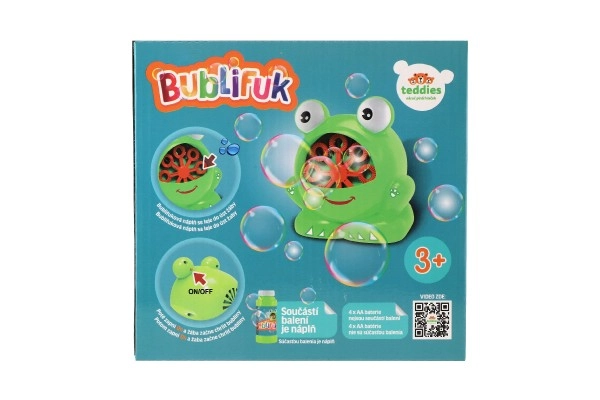 Тази машина за балончета във форма на жаба е лесна за използване – просто натиснете бутона и гледайте как въздухът се изпълва с балончета. Благодарение на компактните си размери е лесна за пренасяне и е идеална за ползване у дома или в двора.