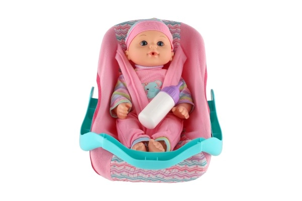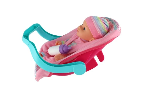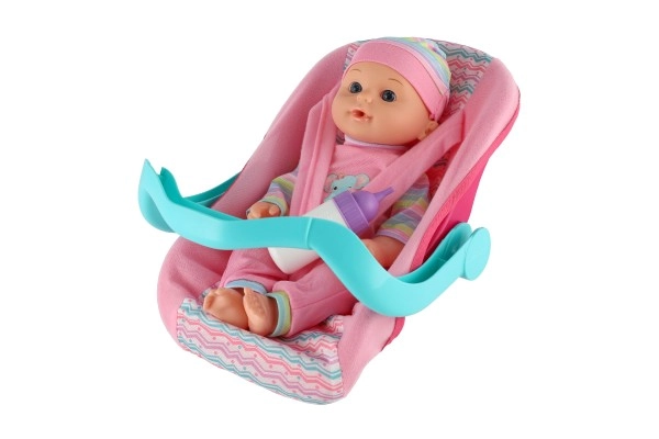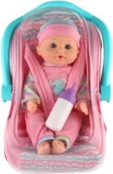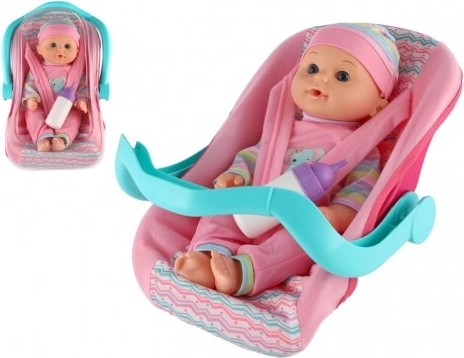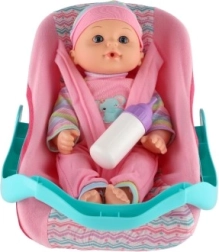 Тази детайлно изработена кукла бебе с височина 30 см идва в удобно столче за кола/носилка с подвижна дръжка. Децата могат безопасно да закопчаят бебето, да го пренасят и да го хранят с включеното шишенце – точно като истински родители. Играта подпомага социалните умения, емпатията и развитието на фината моторика.
