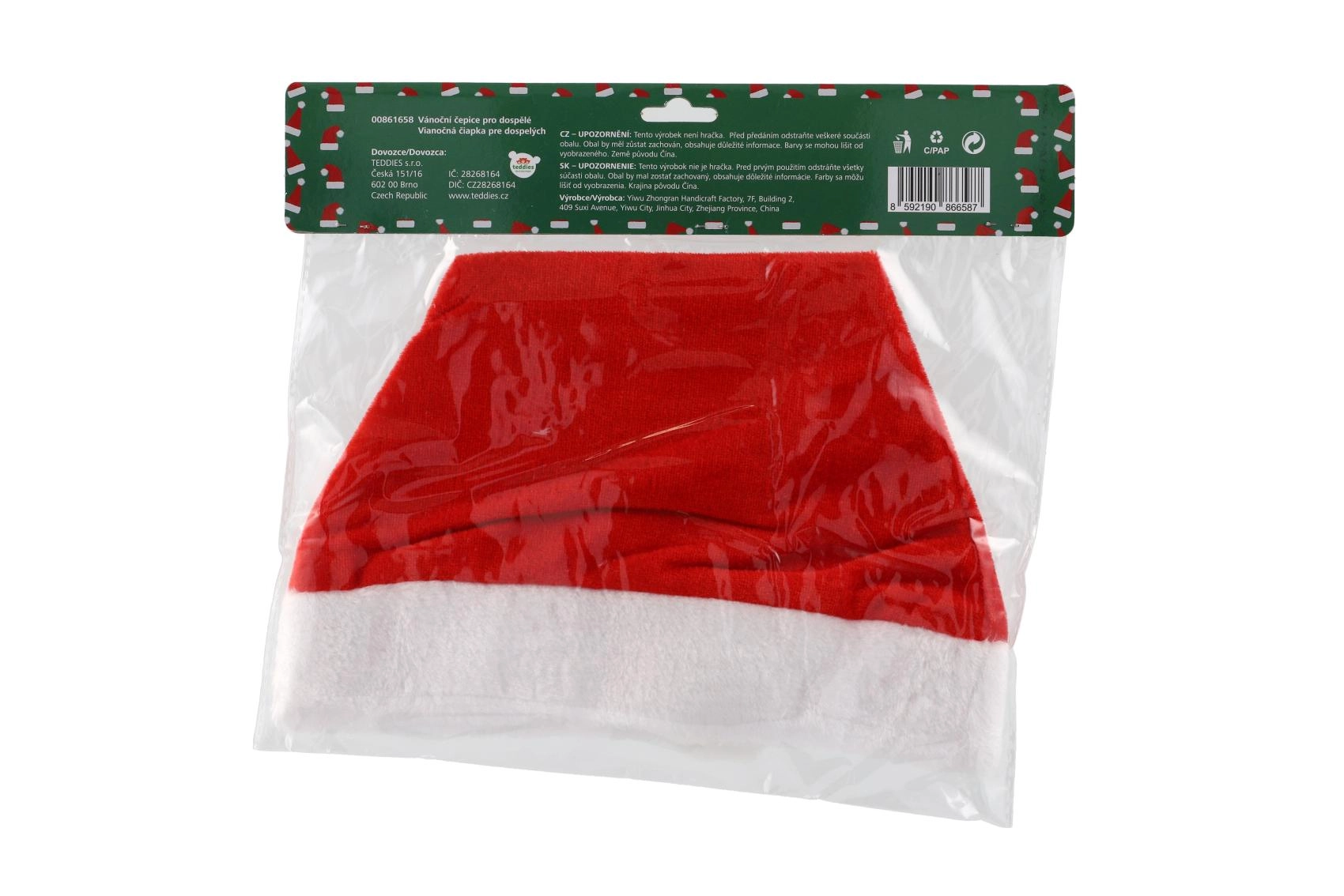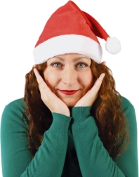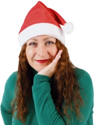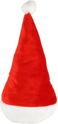 Тази традиционна червена шапка със светъл пухкав кант и бял помпон е незаменим аксесоар за адвентния период. Благодарение на приятната текстилна изработка се носи удобно през целия вечер и отлично подхожда както на коледни костюми, така и на ежедневно облекло.