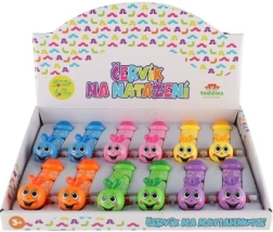 Този цветен навиващ се червей е чудесен избор за първа подвижна играчка. Достатъчно е да завъртите навиващото винтче отстрани и червеят се задвижва – пълзи напред, сладко се поклаща и мотивира децата към активна игра.