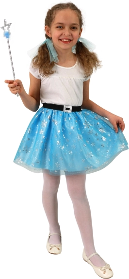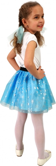 Тази прелестна детска туту пола превръща всяко момиченце в истинска зимна принцеса. Лекият и пухкав тюл в син нюанс е допълнен от блестящи снежинки, които красиво отразяват светлината. Благодарение на еластичната талия полата се облича лесно и е удобна за носене през целия ден.