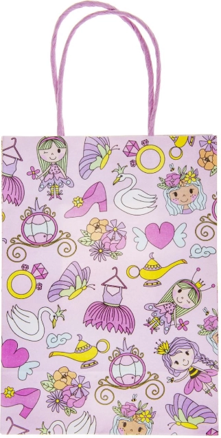 Тази подаръчна торбичка с нежен мотив на принцеса ще зарадва всяка малка кокетка. Благодарение на компактните размери 16 × 22 × 9 см е чудесен избор за по-малки и средни подаръци, играчки или лакомства.