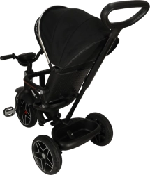Триколката е оборудвана с множество предпазни елементи, включително колани и сгъваем сенник, които осигуряват безопасността на вашето дете по време на всяко каране.