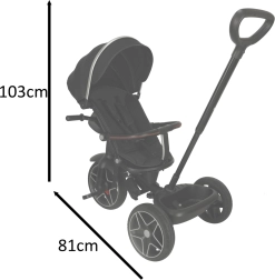 Тази триколка предлага дългосрочно използване благодарение на възможността да се трансформира от количка в триколка, когато детето порасне и е готово да кара самостоятелно.