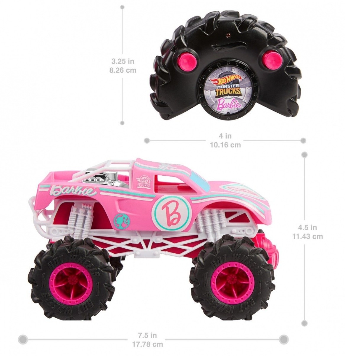 Любимият свят на BARBIE се среща с адреналиновото действие на HOT WHEELS. Този дистанционно управляван монстър трак в иконичен розово-бял дизайн има огромни колела за офроуд, здрава конструкция и чувствително управление за малки и по-големи шофьори. Идеален за креативна игра, състезания и демонстрационни трикове.