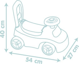 Воланът с клаксон добавя забавление, а седалката с тайно отделение побира малки съкровища. Предните и задните издатини против преобръщане повишават безопасността при движение и спиране. Идеален помощник за учене на ходене, за баланс и за укрепване на крачетата.