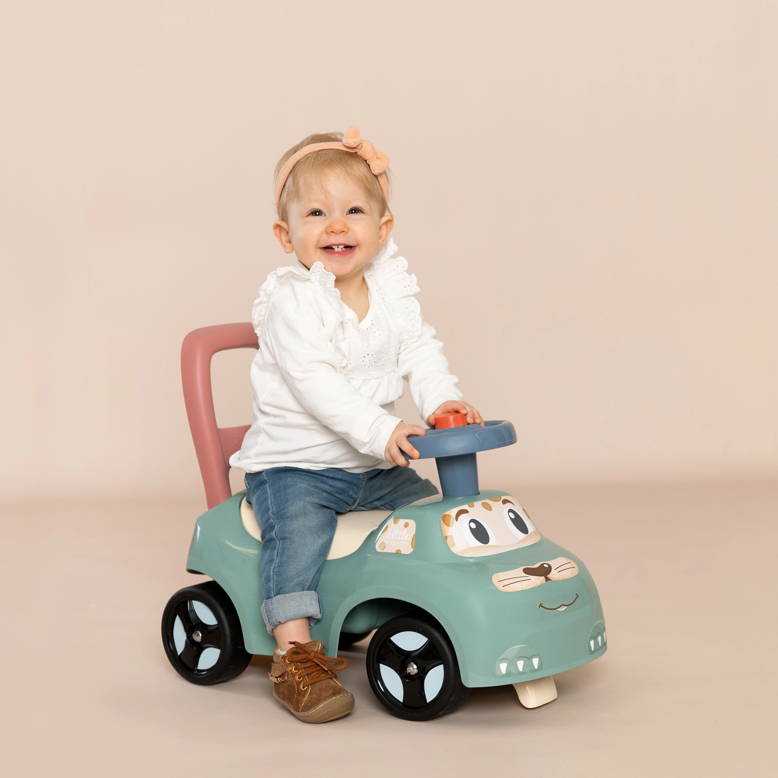 Проходилката-количка Little SMOBY е чудесна за първите стъпки и първите карания. Детето може да се подпира на високата облегалка с дръжка или самостоятелно да се оттласква с крачета. Компактната конструкция и стабилните колела осигуряват удобно и безопасно ползване както на закрито, така и навън.