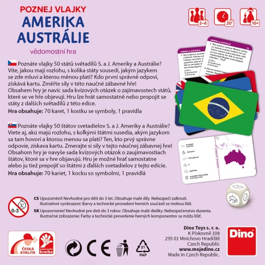 Предимство на играта е нейният компактен дизайн, благодарение на който е идеален спътник за път или ваканция. Комплектът позволява разширяване благодарение на съвместимостта с други издания от серията, което носи безкрайни часове забавление и учене. Покажете знанията си и станете непобедими в разпознаването на флагове!