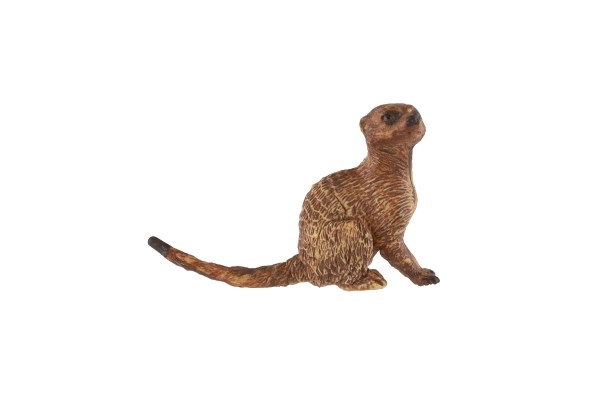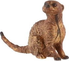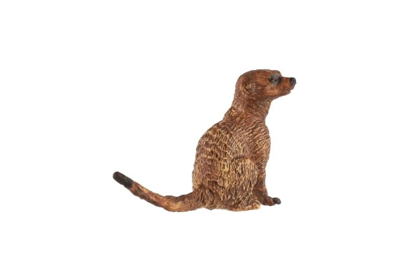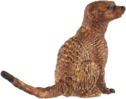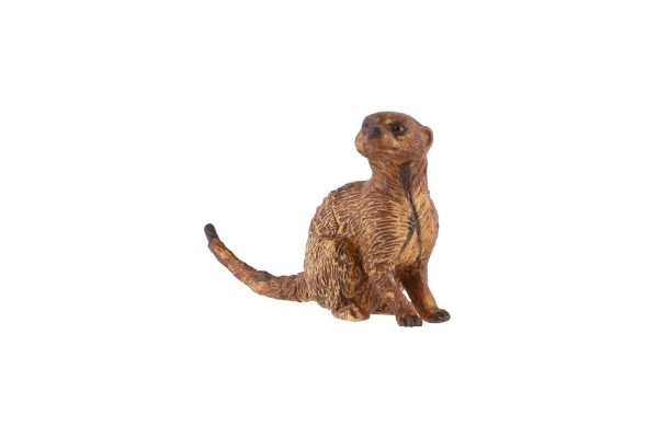 Тази прецизно изработена фигурка на сурикат вярно пресъздава популярния обитател на африканските савани. Светлокафявото оцветяване и фината текстура подчертават реалистичната визия, която изпъква на рафт, на бюрото или в детската стая.