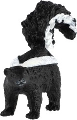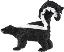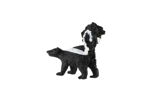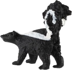 Тази прецизно изработена фигурка на ивичест скункс вярно пресъздава характерните белези на този северноамерикански бозайник – контрастните ивици и изразената опашка. Подходяща е като образователно средство, декорация за детска стая и като колекционерски модел.