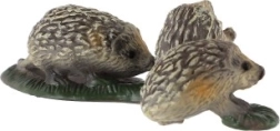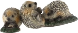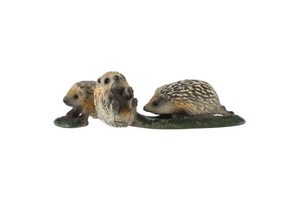 Тази малка декорация изобразява майка таралеж с малките си върху зелен подставка, наподобяваща тревна площ. Изглежда естествено благодарение на прецизно изработените детайли на бодлите, муцунките и лапичките. Идеална за рафт, перваз, работно бюро или детски кът.