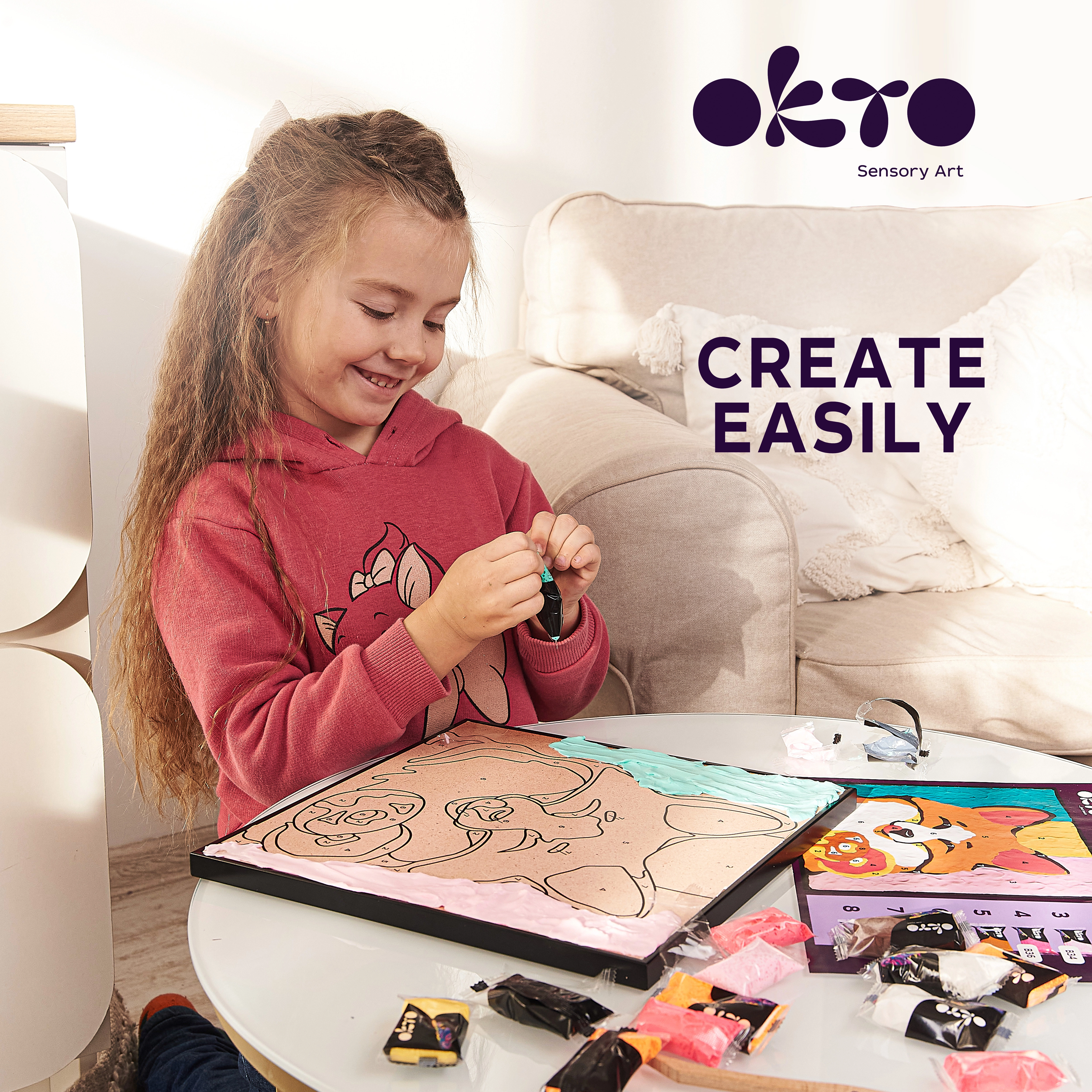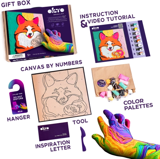 Открийте радостта от творчеството с творческия комплект OKTO лисица. Той комбинира рисуване с пръсти и моделиране от въздушно втвърдяваща се маса, така че лесно ще създадете пластична, оригинална картина върху квадратно платно 29 × 29 cm. Включена е илюстрирана инструкция, която ще ви води стъпка по стъпка.