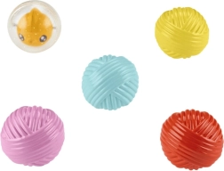 - 4 цветни топчета и една дрънкаща топка с идеален размер за детски ръчички.