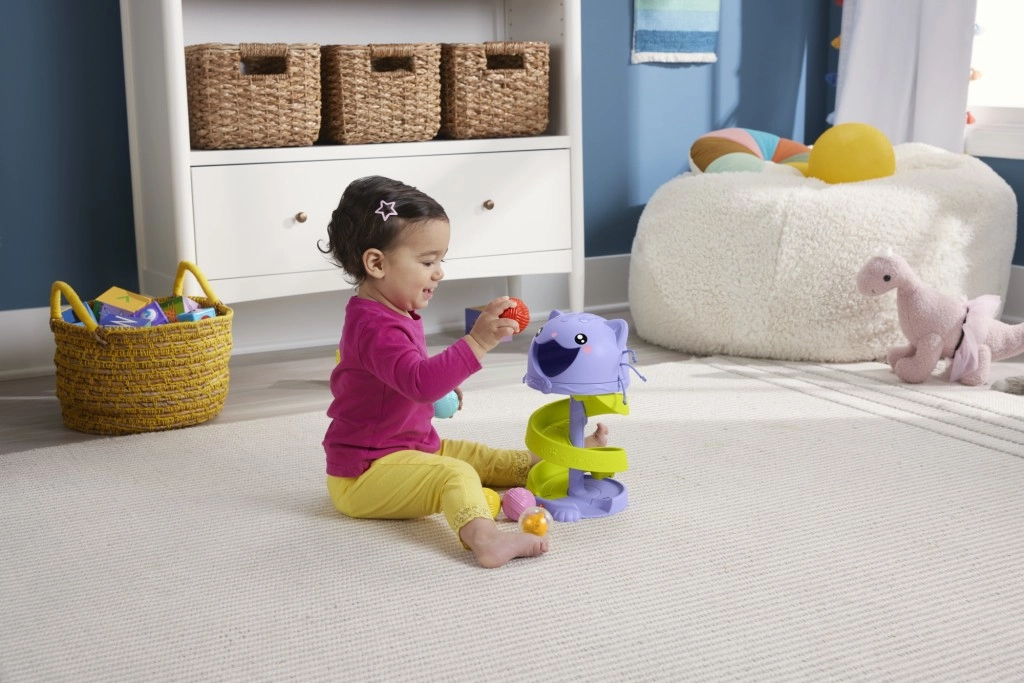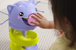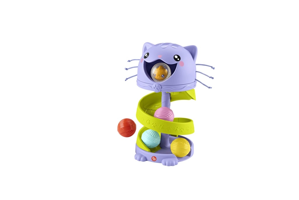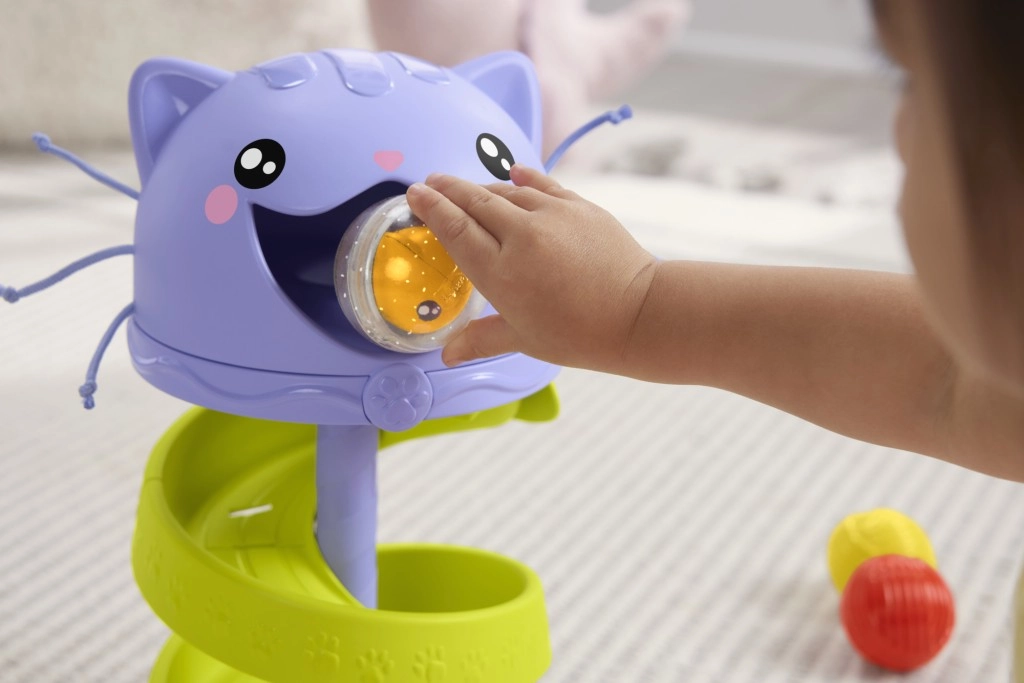 Котешката пързалка от Fisher-Price развива фината моторика на децата и ги учи на принципа на причината и следствието по забавен начин.
