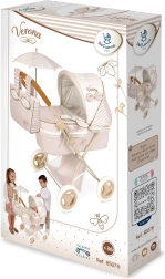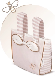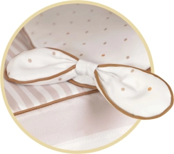 Детайлно изработена количка за кукли в съчетание от светлобежово и бяло с нежни точки и райета ще очарова всяка малка майка. Естествената визия е допълнена от сладки панделки и фини бродерии на пчелички. Благодарение на сгъваемата конструкция количката се носи и съхранява лесно.