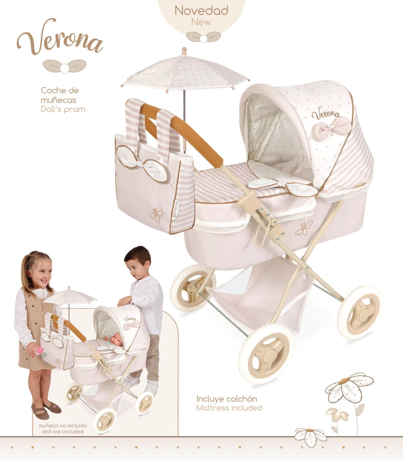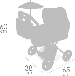 Слънчобран, подвижна чанта, покривало за коша, матрак и долен кош – всичко необходимо за удобно возене на куклите.