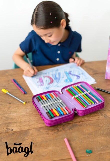 Подобрете своята училищна екипировка с трипластовия несесер, който предлага достатъчно пространство за всички ваши моливи, флумастери и други учебни принадлежности. Несесерът е оборудван с ластични държачи, подходящи и за по-обемни писмени принадлежности, което позволява добра организация и лесен достъп.