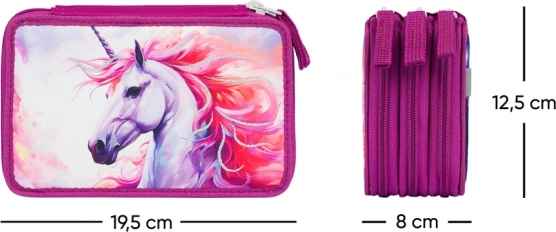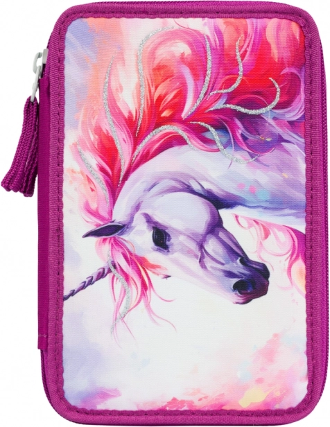 Стилната комбинация от фантастичен мотив с еднорог и практичен дизайн прави този несесер перфектен избор за всеки ученик.