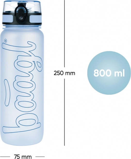 Тританова бутилка BAAGL е перфектен спътник за ежедневна употреба. Оборудвана е с заключващ се капак, който гарантира, че нито капка няма да се разлее. Бутилката съдържа и сито, което я прави идеална за приготвяне на лимонади с плодове или чай. Благодарение на обема си от 800 ml е практична за по-дълги излети или спортни дейности.