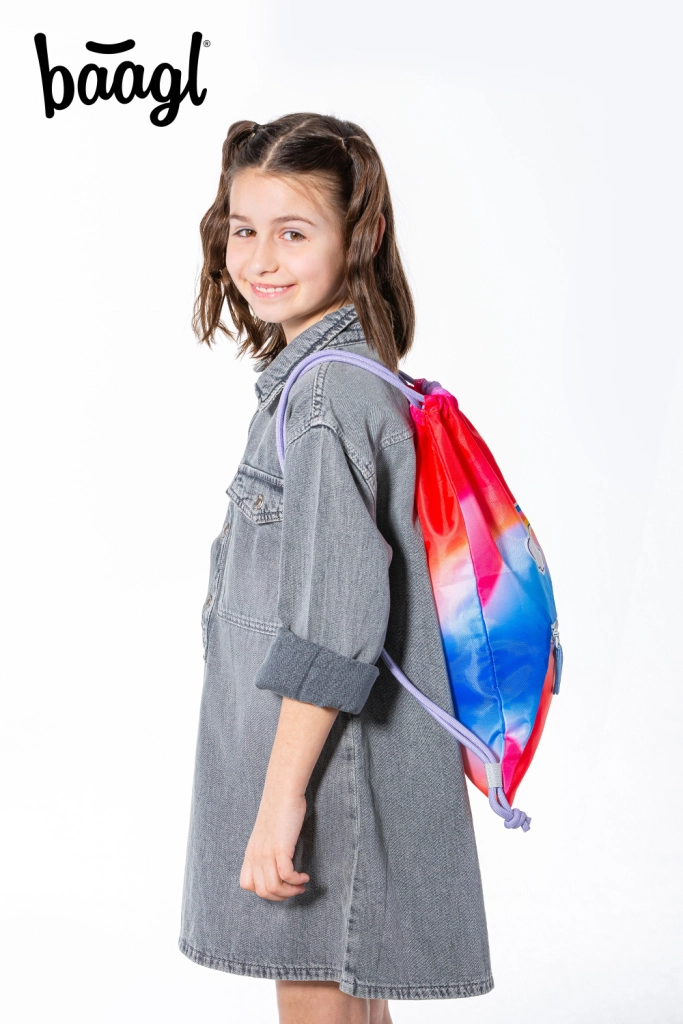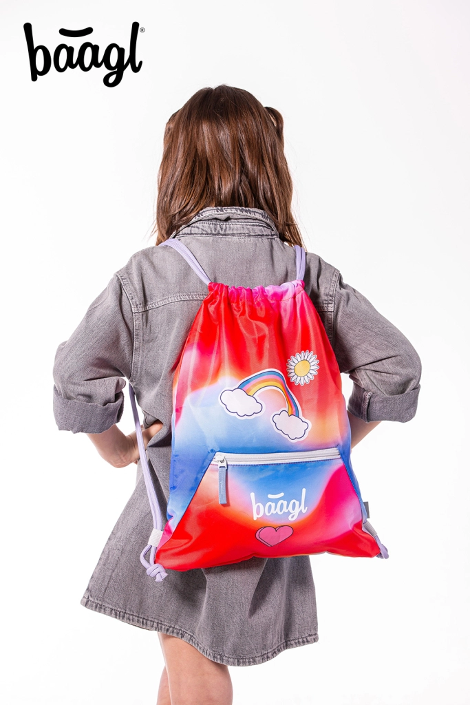 Търсите надеждна торбичка за пантофи, спортна екипировка или вещи за занималня и клубове? Торбичката Baagl в червено с мотив дъга е отличен избор за деца и тийнейджъри. Изработена е от здрав и миещ се материал, което я прави устойчива на ежедневна употреба и лесна за поддръжка.