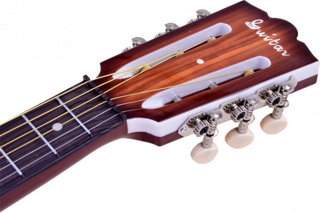 Благодарение на възможността за регулиране на грифа китарата може фино да се настрои за по-удобна игра. Идеална е за предучилищна и начална възраст, които искат да пробват първите акорди и песнички.