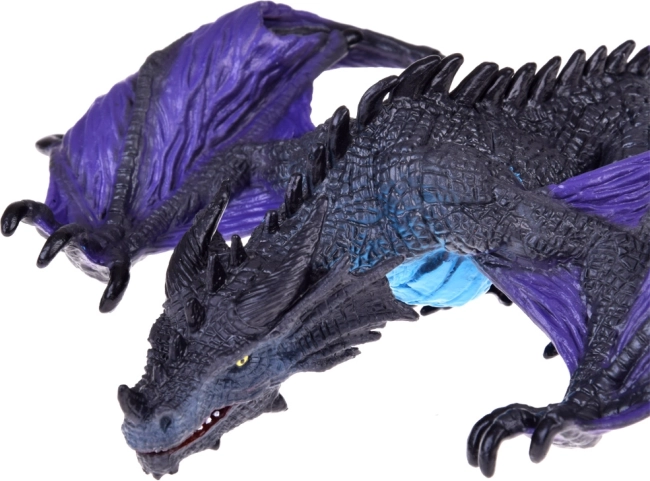 Този величествен черно-лилав дракон е детайлно изработена фигурка, която ще оживи всяко детско царство на фантазията. Реалистичната текстура на люспите, ефектните крила и подвижната челюст позволяват на децата да измислят собствените си истории и да развиват креативност и фина моторика.