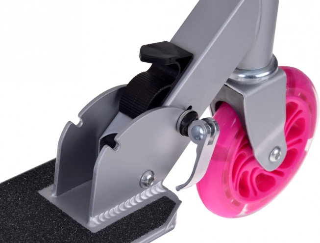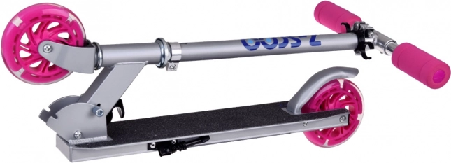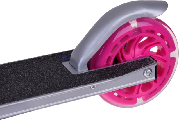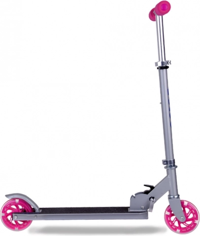 Тази сгъваема детска тротинетка съчетава ниско тегло, стабилност и безопасност. Колелата светят благодарение на вградени LED диоди по време на каране без нужда от батерии, което повишава видимостта и атрактивността. Алуминиево-стоманената конструкция е здрава и същевременно лесна за пренасяне, подходяща за парка, велоалеята и пътувания.