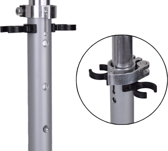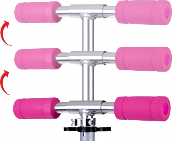 Височината се настройва лесно в три стъпки (около 62/77/88 см). Меките пяна ръкохватки осигуряват сигурен и комфортен захват.