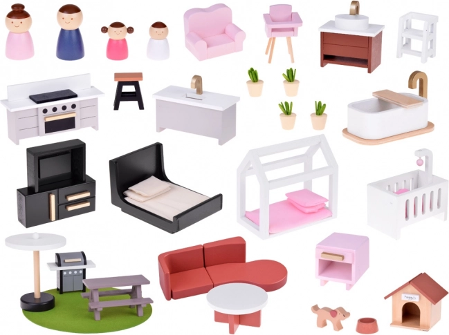 Къщичката включва всички необходими аксесоари за цялостно оборудване на всички помещения.