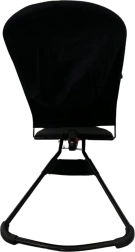 Сгъваемият механизъм позволява бързо прибиране до компактна форма за лесно пренасяне и съхранение. Минималистичният дизайн в черно се вписва във всеки интериор, а благодарение на предпазния колан детето е винаги надеждно обезопасено в седалката.