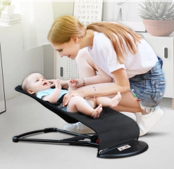 Шезлонгът е проектиран за деца до 24 месеца и предлага нежно люлеене, което успокоява и забавлява бебето. Комбинацията от памук и полиестер е приятна на допир и лесна за поддръжка, а стоманената конструкция осигурява стабилност и дълъг живот. Благодарение на 4 позиции на настройка, включително напълно легнала позиция, подкрепя комфортния сън и активните моменти.