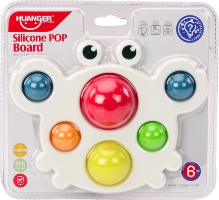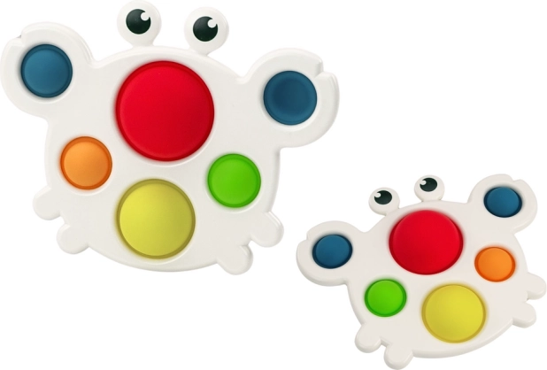 С нашата силиконова дъска във форма на рак децата могат да изследват света на цветовете и допирите. Играчката има шест ярки цвята: жълт, зелен, червен, оранжев, жълт и тюркоаз. Благодарение на нея децата се учат да разпознават цветовете и подобряват своята фина моторика.