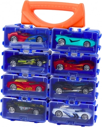 Открийте забавлението в движение с комплект от 8 метални колички, подредени в практично куфарче. Всяка количка има собствен стил и цветове, а куфарчето с прегради осигурява ред и лесно пренасяне. Идеално за малки любители на колите от 3 години, с сертификати CE и стандарт EN71.