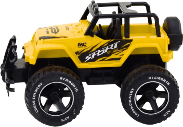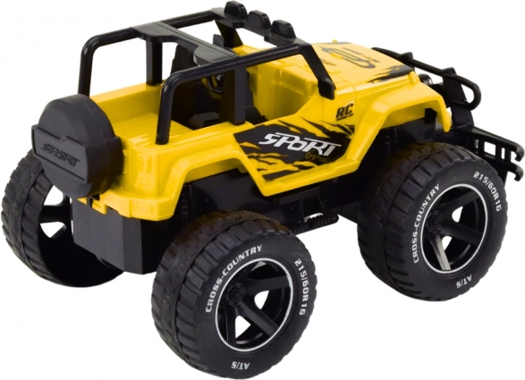 Изживейте екшън приключения със състезателната RC офроуд кола в мащаб 1:18. Жълтият ѝ цвят и детайлната каросерия, включително надписа 'SPORT', ѝ придават спортна визия. Интегрираните масивни гуми осигуряват стабилност и страхотно сцепление върху всякаква повърхност. Идеална за симулация на реалистични офроуд ситуации.