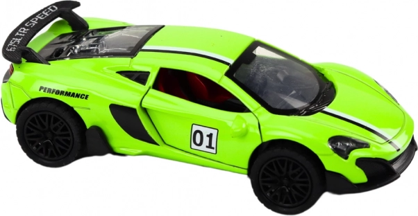 Тази спортна количка в зелен цвят, в мащаб 1:32, е идеален избор за любителите на автомобилите, които ценят изключителния дизайн и динамиката. Нейната спортна силуетна линия вярно наподобява очертанията на истински състезателни автомобили, което позволява реалистично изживяване в по-малък мащаб.
