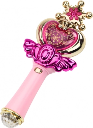 Тази елегантна розова вълшебна пръчица превръща всяко дете в истинска принцеса. Цветните LED светлини и звукови ефекти създават вълшебна атмосфера и насърчават творческата игра. Благодарение на златистите орнаменти перфектно подхожда на костюми за карнавал, парти и Хелоуин.