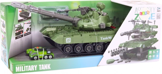 Освен основния танк, комплектът съдържа две малки военни превозни средства, които могат да се интегрират в танка, осигурявайки безкрайни възможности за въображаема игра и тактика.