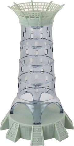 Стабилна пластмасова кула с отвори за поставяне на жълти, червени и зелени пръчици образува сърцето на играта. Всяко изтегляне променя конструкцията и носи напрежение.