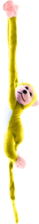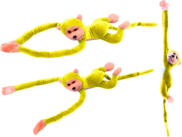 Тази голяма жълта плюшена маймунка носи много радост и уют. Благодарение на мекия, нежен материал е идеална за гушкане, а нейният игрив вид ще изрисува усмивка във всяка ситуация. Велкрото на дланите позволява маймунката да се закача лесно на легълце, дръжка на количка или да „прегръща“ детето.