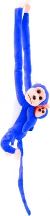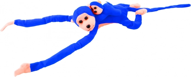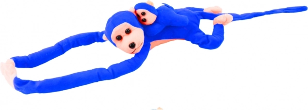 Очарователна плюшена маймунка с бебе в наситено син цвят е идеалният приятел за децата. Има мека и кадифена изработка, дълги крайници с ленти с велкро за закрепване към ръка или легълце и размер 70 см, който приканва към гушкане и игра.
