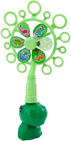 Лесно наливане на разтвора в купичката и удобно потапяне на ветрячката. Зеленият контейнер във форма на динозавър впечатлява децата от пръв поглед.