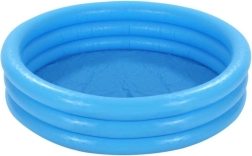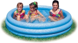 Синият надуваем детски басейн на Intex е отличен избор за летни игри в двора. Благодарение на лесната инсталация и ниското тегло басейнът се подготвя бързо за употреба. Достатъчно е да го разположите на стабилна повърхност, да го надуете и напълните с вода. Здравите трирингови стени осигуряват достатъчна стабилност дори за най-малките потребители.