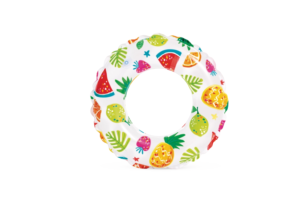 Този детски надуваем пояс е перфектен избор за първите водни забавления. Леката конструкция и издръжливият PVC материал осигуряват стабилност и комфорт при плуване и игра във водата. Веселите мотиви с рибки, морски създания, сладоледи и плодове ще зарадват всяко дете и ще направят летните дни по-цветни.