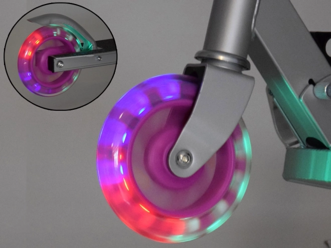 Тази детска сгъваема тротинетка съчетава лекота, издръжливост и безопасност. Колелата светят автоматично при движение чрез магнитна енергия, така че не са необходими батерии. Металната конструкция от алуминий и стомана гарантира дълъг живот и ниско тегло за лесна маневреност.