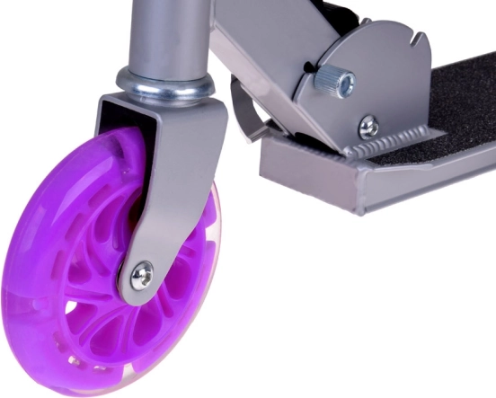 Лека и издръжлива сгъваема тротинетка за деца с LED светещи колела, регулируема височина на кормилото и платформа с противохлъзгащо покритие. Сгъва се лесно, пренася се удобно и благодарение на крачната спирачка с калник е безопасна дори при по-висока скорост. Идеална за разходки в парка, по велоалеи и за пътувания.