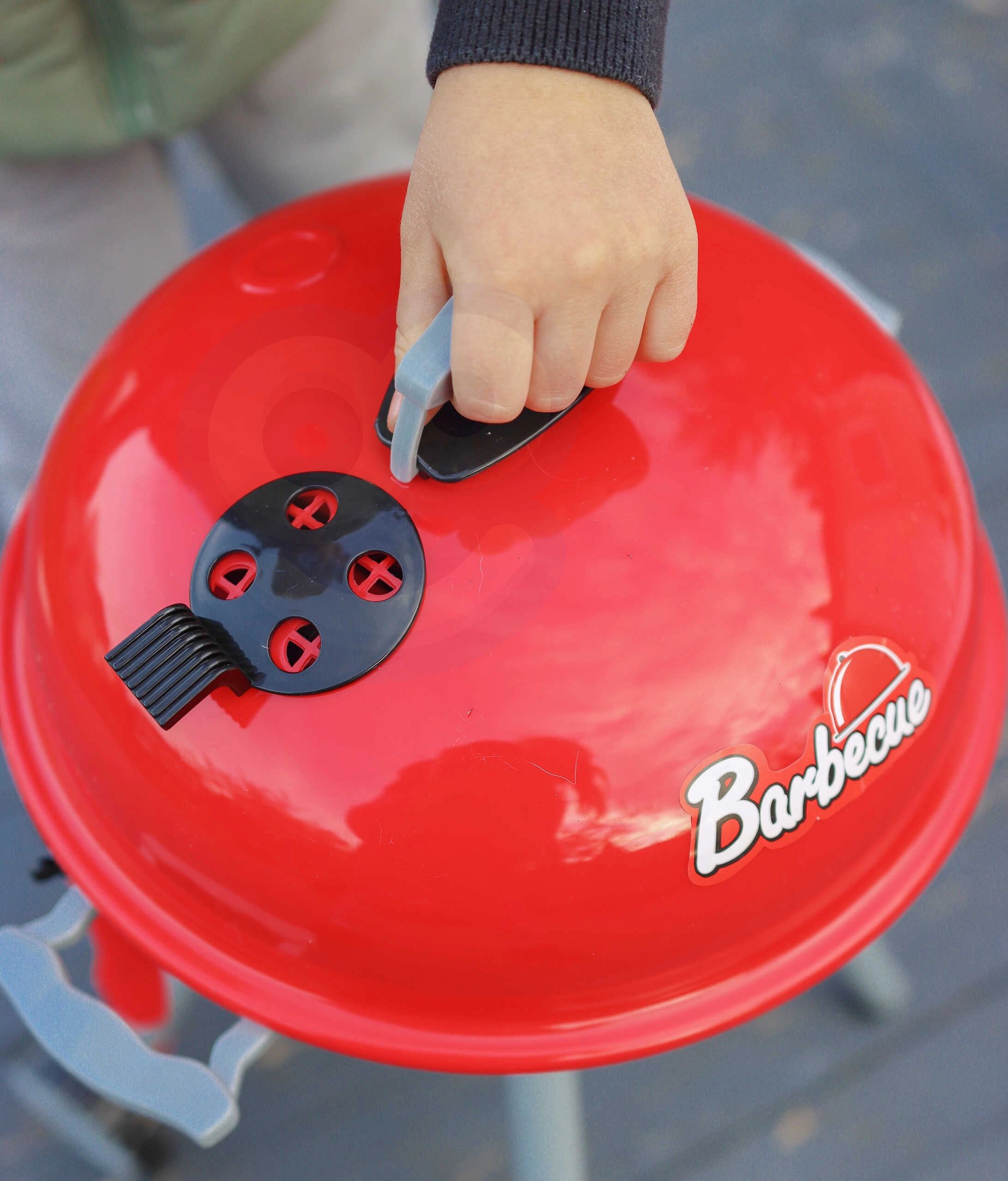 Свалящият се капак предпазва скарата, а колелцата и дръжката улесняват преместването из дома и двора. Здравата конструкция издържа на ежедневна игра.