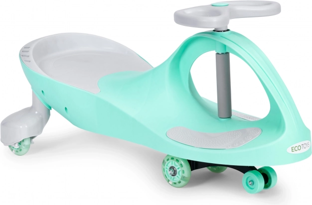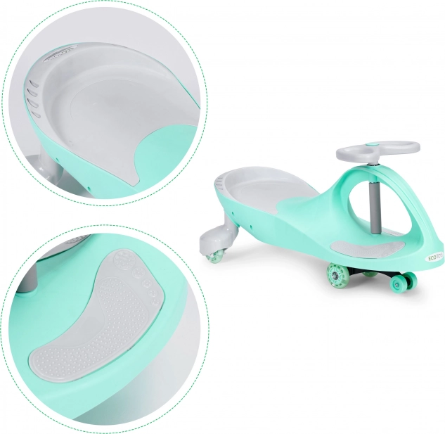 Кола-танцувачката ECOTOYS превръща всяко каране в приключение. Благодарение на специалната система се задвижва само с ритмично кръгово въртене на волана наляво и надясно, което развива равновесието и моториката на децата. Леката, но издръжлива конструкция е идеална за домашна употреба и за гладки външни настилки.