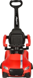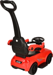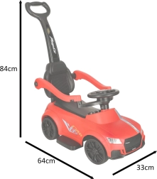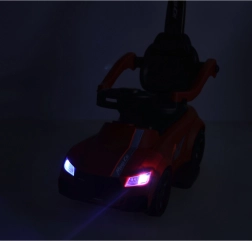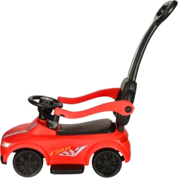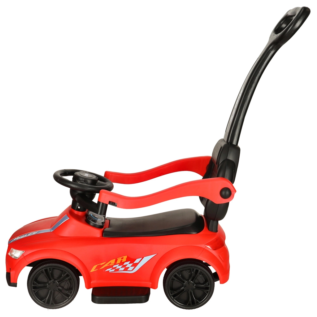 Едно, две, три… старт! Тази червена кола-ездачка за деца от 12 месеца е идеална както за първи самостоятелни карания, така и за разходки с родителите. Интегрирани светлини и звукови ефекти (захранвани с 3× AA) добавят стил към карането, докато удобната седалка с облегалка и странични предпазители подкрепят увереността на малките шофьори.
