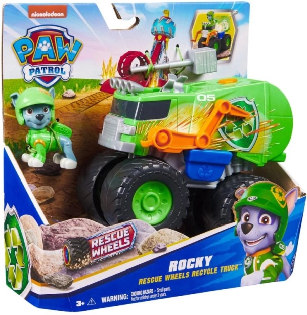Не се колебайте да тръгнете с Paw Patrol на спасителни мисии с големи колела, вдъхновени от сериала! Този камион има огромни колела и е стилизиран в същия дизайн като по телевизията. Децата могат да поставят Роки в шофьорската кабина и да се впуснат да спасяват положението.