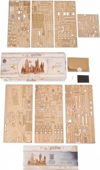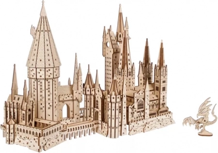Подарете си удоволствието от емблематичния модел на замъка Хогуортс, който вярно пресъздава филмовите детайли – от величествените кули и кулички, през изпипаните прозорци, до драматичните линии на каменната зидария. Задната страна разкрива интериор с Голямата зала, куличното стълбище и потайни коридори. Благодарение на лазерно изрязаните части сглобяването е прецизно, забавно и без нужда от лепило.